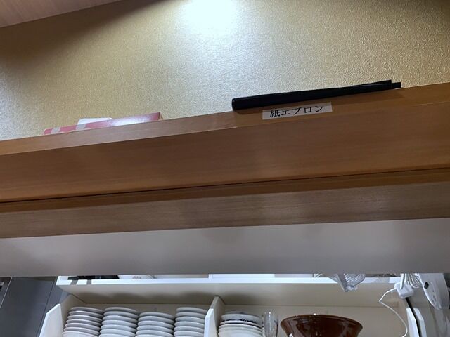 17:20頃到着で先客なし後客1。スタッフは男性3女性1。テッシュと紙エプロンはカウンター上頭上の棚にあり。