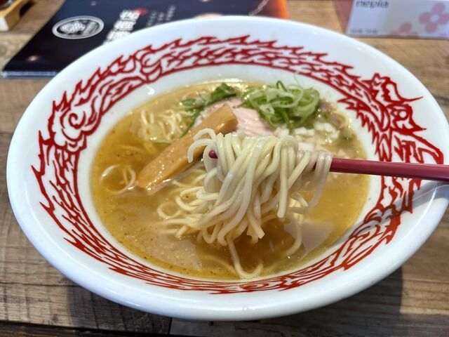 麺はストレート中細タイプ。チュルッと啜りやすいタイプで子連れファミリーのキッズにも食べやすい仕様。
