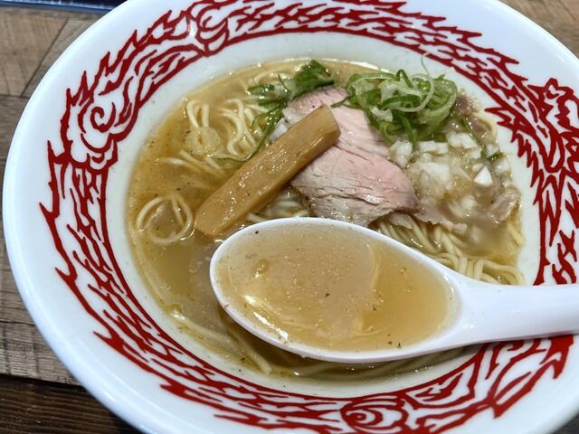 スープはさらりとした白湯塩味。豚骨清湯と、真鶴の老舗干物店魚伝の鯖骨をローストして炊いた出汁のWスープ。豚そばというより鯖そばとネーミングした方がしっくりくる圧倒的な鯖缶、もとい鯖感。舌と身体が喜ぶうま味と滋味に満ち溢れた珠玉のスープでとてつもなく美味しい!