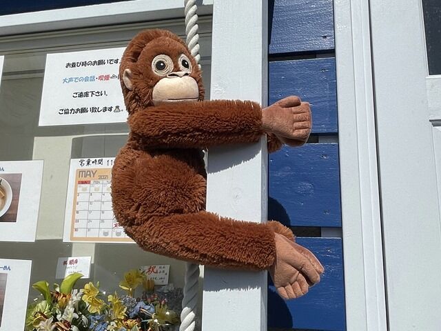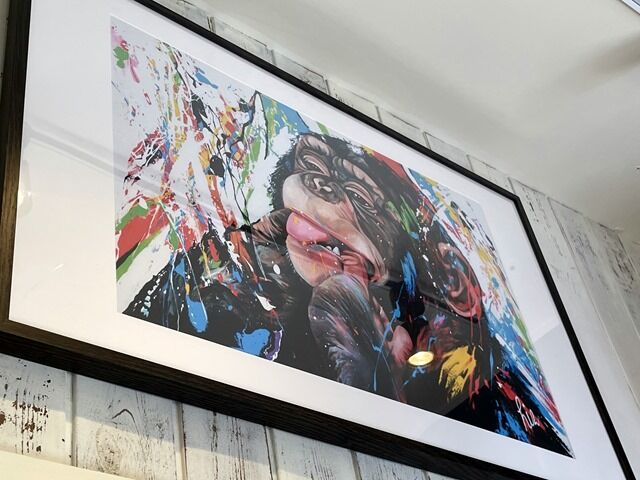 スタッフは厨房に店主さんと女将さん、他にサポートスタッフ2名の4名体制。店内壁面各所にモンキーの絵画がディスプレイされています。
