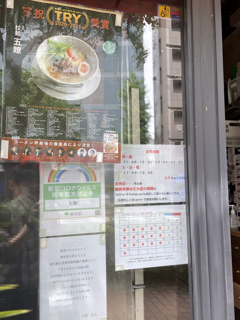 拉麺五瞭は2019年10月7日三田にオープン。店主さんは焼肉店で10年経験の後、銀座篝とえびそば一幻 東京店に勤めていたとのこと。そして今回本郷三丁目へ移転。