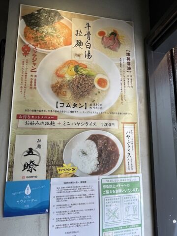 牛骨白湯(燻製醤油)・岡崎白湯は準備中。五瞭セットは好みのラーメンとハヤシライスのセット。ハヤシライスはテイクアウト可能。