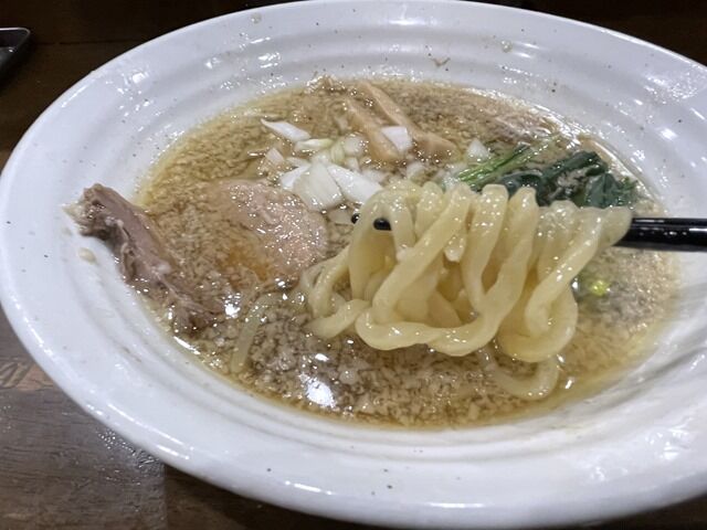 スープはさらさらの清湯煮干醤油味。そこに細かい背脂がたっぷり入り。背脂煮干醤油ってことで燕三条系風な仕立て。ただしバラ海苔がないのでちょっと雰囲気違います。優しく穏やかな煮干出汁でほんのりふわりと煮干って感じ。柔らかい煮干出汁ですが、背脂がとてもきめ細かいためバランスは上々。コクと甘みががブーストされた煮干しスープで美味しい!