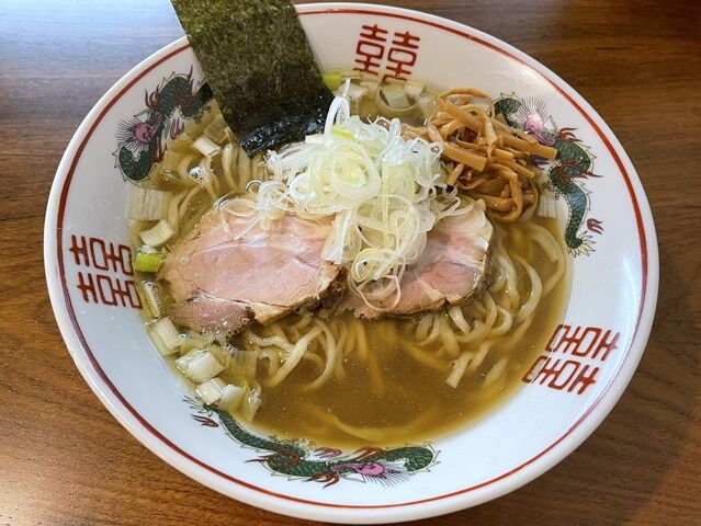 双喜紋と青龍が舞うTHEラーメンどんぶりな器で着丼。