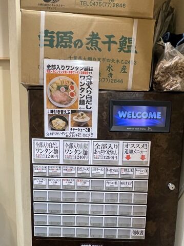 順番が来て店内へ。入店するとまず券売機で食券購入です。主なメニューは、白だしラーメン850円、山椒ラーメン850円、あっさりつけめん900円、他。