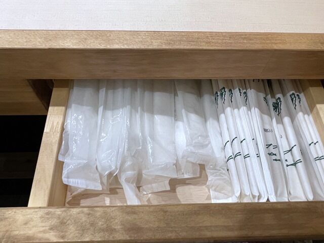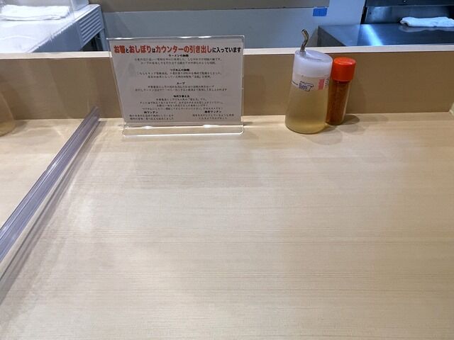 箸とウェットティッシュはカウンター引き出しの中で、このカウンターはぷれじでんとと同じ造り。