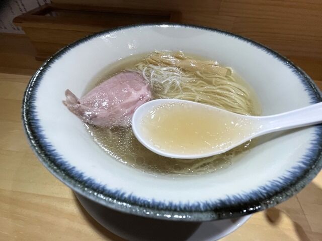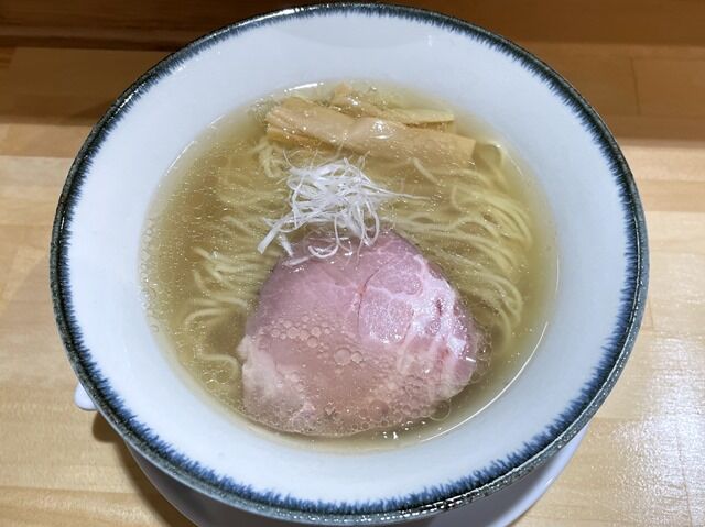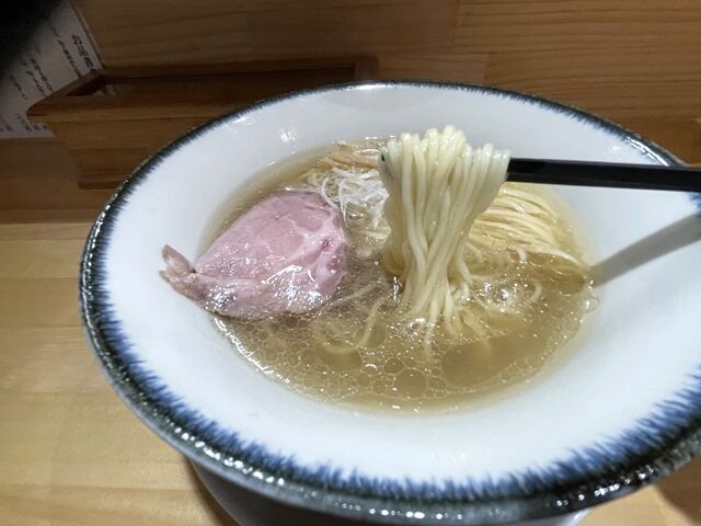 スープはさらさらの清湯塩味。大山鶏ベースに鰹節・煮干等をプラス。ごくあっさりとし た淡麗を絵に描いたようはんなりと上品な味わい。進化の凄い点は、ごく薄口淡口ながら分厚い出汁で確かな満足感を味わえるところと、食後に心地よい余韻がいつまでも続く点。そして進化イズムを継承したこちらも、1杯でしみじみと満たされた後さらにほのぼのとした余韻がやって来ます。紛れもなくキングオブ塩らーめんを継承した味ですごく美味しい!
