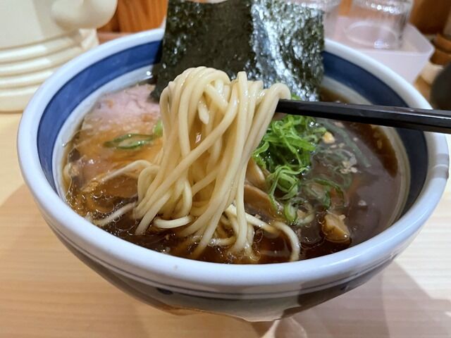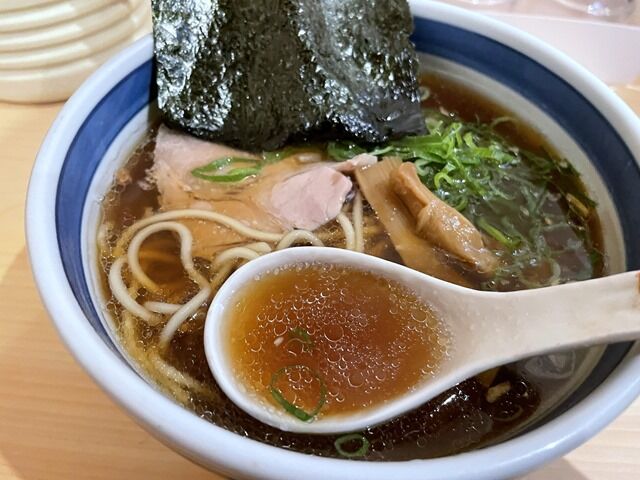 スープはさらさらの清湯醤油味。豚・鶏・魚の3本の寸胴を使う無化調トリプルスープ。魚介が効いた和風寄りの分厚い出汁であっさりというよりしっかりと力強い味わいでインパクトがあります。滋味深く身体が喜ぶ沁み渡る旨さがあってすごく美味しい!