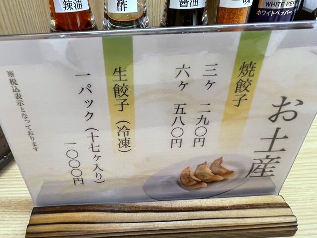 卓上調味料は辣油、酢、一味、GABANホワイトペッパー。