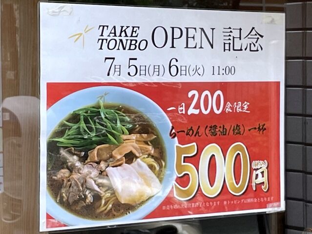 2021年7月5日本日オープンの新店「笠岡らーめん TAKETONBO」へ。