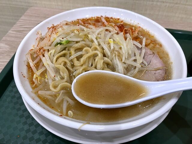 スープは軽く乳化の進んだ豚骨醤油味。粒大きめの背脂が入って脂感をブースト。クセのないまろやかでマイルドなコクと旨みがあって、食べやすい二郎インスパイア。中毒になるかは人それぞれですが、1限目の二郎系入門の時間として好適な一杯でとても美味しい!