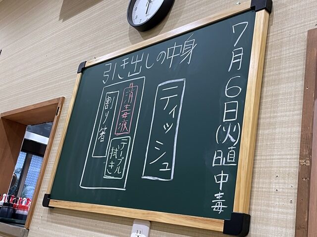 黒板に記載された本日の日直は中毒くん。