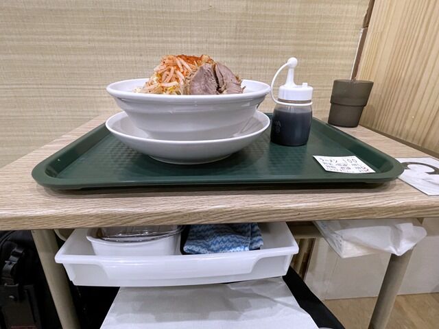 そして待つことしばし「ラーメン(小100g)(野菜普通、背脂普通)」完成で〜す♪