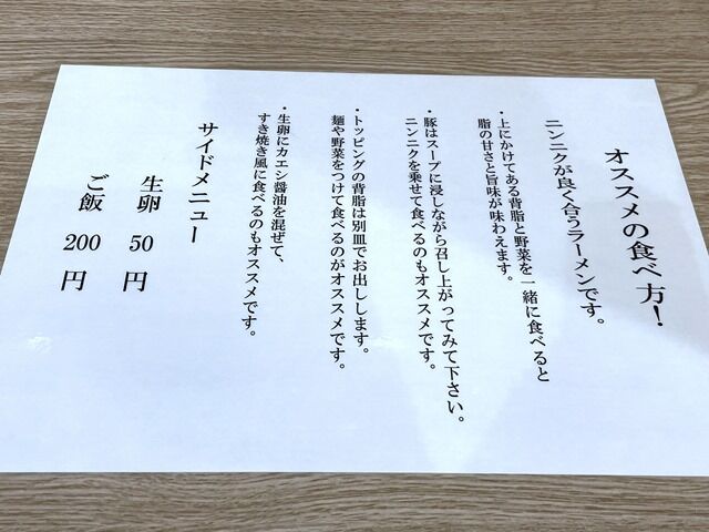 ニンニクはセルフコーナから自分で好きなだけ入れられるので指定なし。下画像は間違い例(;^ω^)