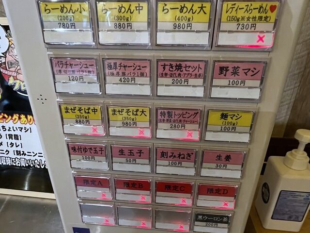 無料トッピングはヤサイ、アブラ、カラメ、ニンニク。ヤサイはマシ、ヤサイ以外はデフォで入って無くてオンする形。コールのタイミングは食券回収時。