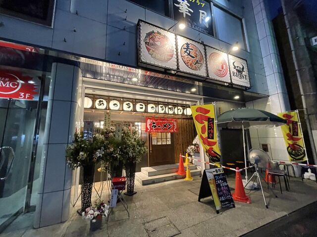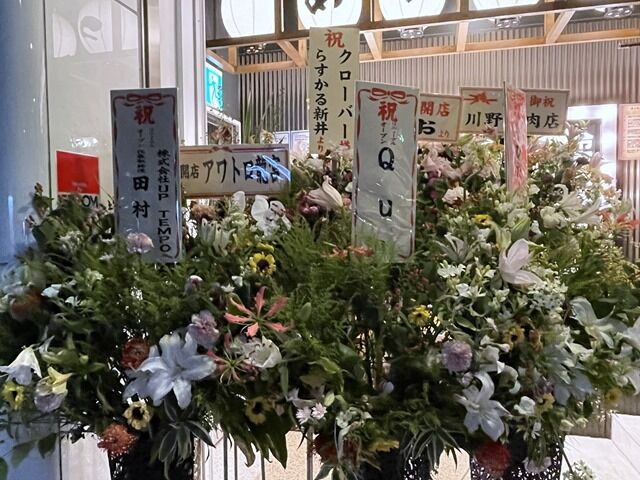店頭開店祝花はアワトロ龍宮、大食いYouTuberらすかる新井氏から。