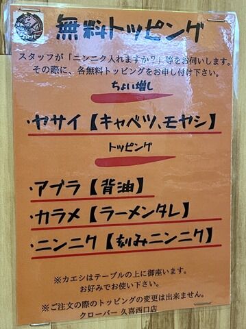 2021年7月21日オープン。麺屋みつばの二郎系二毛作店「クローバー」がスピンオフして路面店に。夜から営業なので平日訪店。