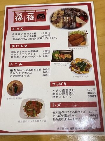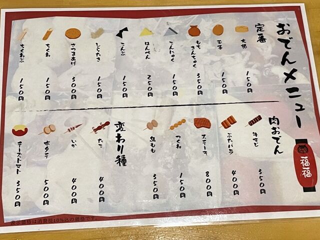 やはり「満天横丁」内にある「おでん居酒屋 福福」と同系列とのことで、相互に注文・場内配達可能。