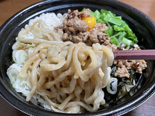 麺は極太強縮れタイプ。ガチに固ゆででワシワシと頬張るタイプ。ぶっちゃけタレの味がすごく良くて台湾まぜそば専門店に肉薄するレベル。ステーキや肉料理のタレの応用かと思いますが、正直ぶったまげました。ものすごく美味しい!