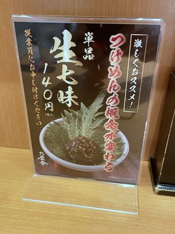 生七味つけ麺は2021年4月14日発売の新メニュー。キャチコピーは「六厘舎史上最強の旨さ!」。