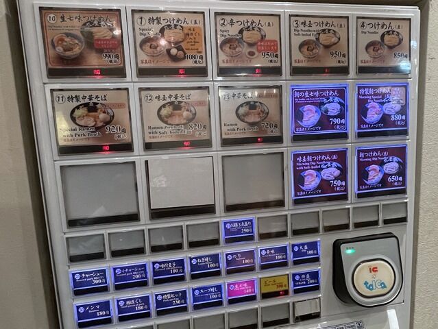 で、六厘舎の朝ラー営業時間は、7:30~9:45(LO9:30)。朝ラー(というか朝つけ)メニューは、朝の生七味つけ麺790円、特製朝つけ麺880円、味玉朝つけ麺750円、朝つけ麺650円、他。それぞれ並盛の料金。朝は安いっすね〜!