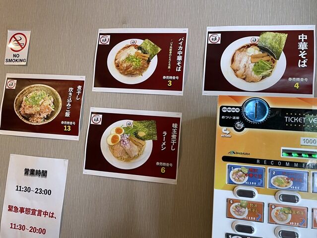 入店するとまず券売機で食券購入です。主なメニューは、中華そば800円、パイ化中華そば880円、煮干し850円、パイカ煮干し890円、和え玉中華そば用・煮干し用各200円、煮干し炊き込みご飯150円、他。パイカは豚バラ軟骨ですが、中華そばにトッピングで+90円、煮干しにトッピングで+40円と煮干しがコスパ優勢。量が違うかもですが。