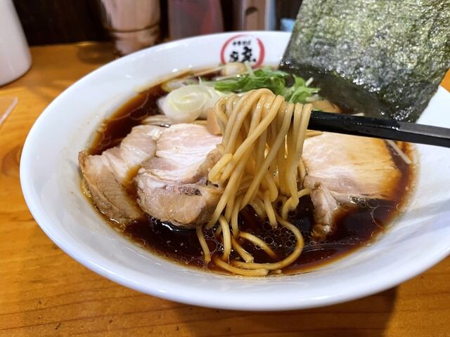 スープはさらっとした清湯醤油味。真っ黒で見た目濃そうですが、角が立ったしょっぱさではなくまろやかな飲み口。ちょっと甘めで肉出汁濃いめ。旨み溢れるスープにたまり醤油的なタレがいい塩梅に調味。他にあまり無いバランスでとても美味しい!