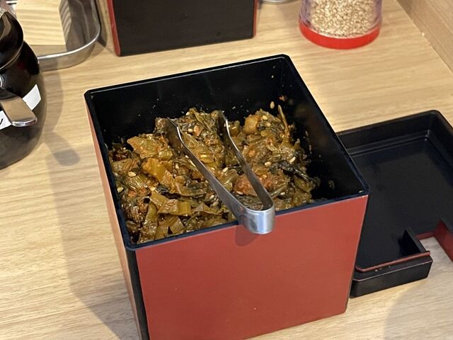 激辛高菜はスタッフに言って冷蔵庫から出して貰う方式で、お願いして出して貰いました