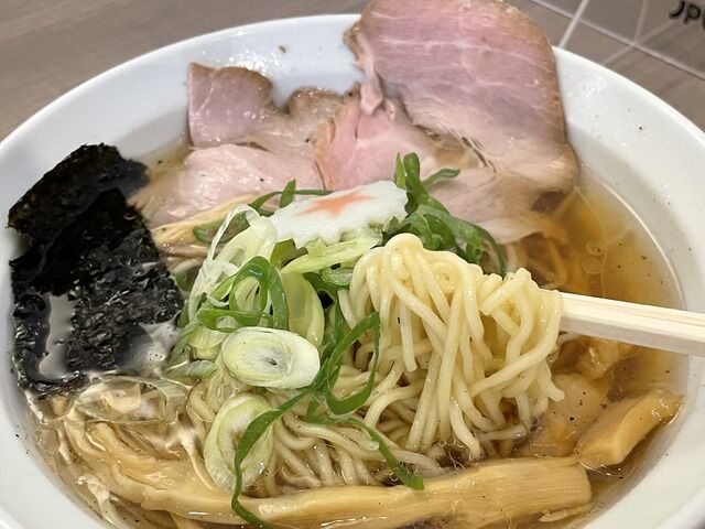 スープはさらさらの清湯醤油味。片口イワシ、燻製平子節、烏賊節等を大量に使用という煮干し出汁全開のスープ。奇をてらわないあっさりながら風味の立ったコクと深くうま味豊かなスープがすごく美味しい!