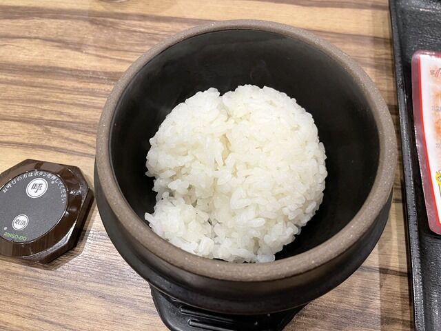 頃合いでベルを鳴らして「石焼ご飯」をリクエスト。激熱でご飯がじゅうじゅうと焦げる音が迫力。
