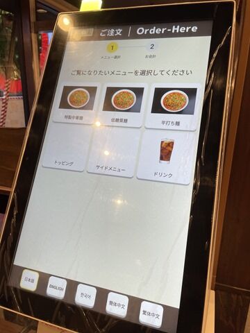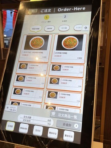 入店するとまずタッチパネル式券売機で食券購入です。メニュー選択のオペレーションですが、麺→辛さ→ご飯の順に選択という画面遷移。