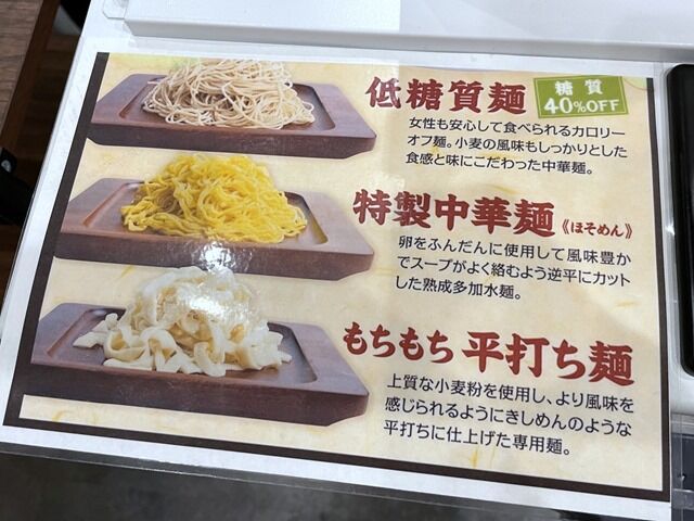 まず麺はスタンダードな卵麺の特製中華麺、糖質40%オフという低糖質麺、きしめん状の平打ち麺からチョイス。✳︎追記、ニュータンタンメンインスパと書きましたが、麺を選べる点は宮崎辛麺を参考にしてるのかも知れません。