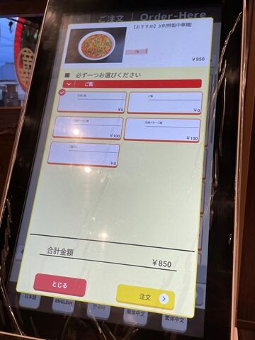 途中領収書ボタンが見つけられず。トッピング、サイドオーダー、ドリンク注文時、トップまで戻らないといけないのもちょっと不便。