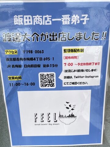 店頭にRamen FEELの宣伝が掲示されてました。
