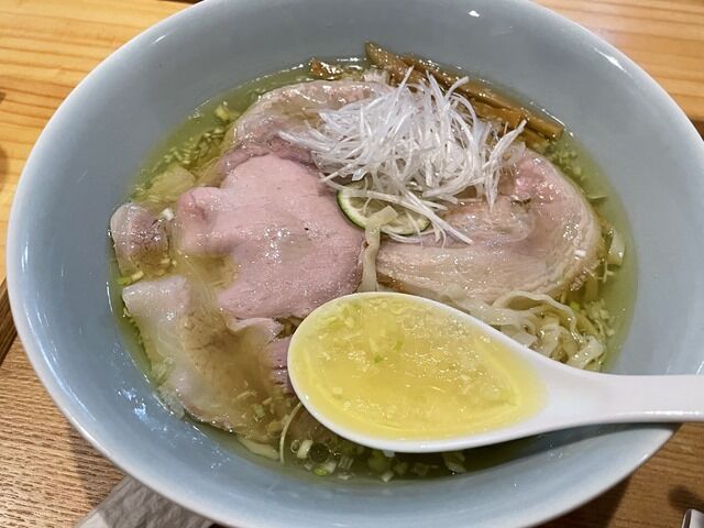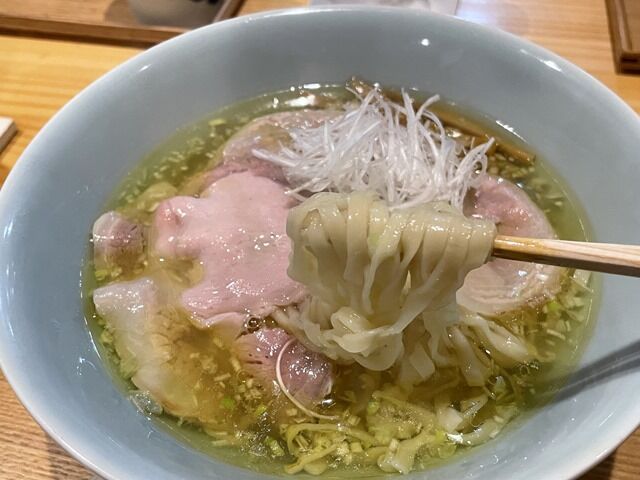 塩も醤油に負けず劣らずのハイクオリティ。この日は麺が平打ちの中太縮れタイプという特別仕様。細麺の絹の様ななめらかでつるっとした食感は素晴らしいですが、今回のぷりっとした食感も楽しくて美味しい!