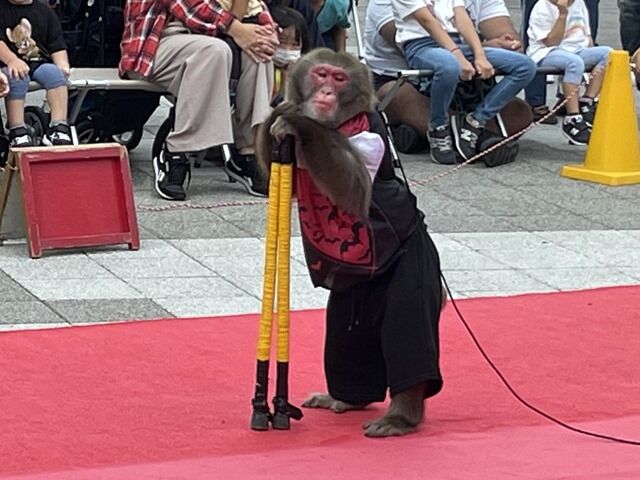 2時間半ほど満喫で仮眠(-_-)zzz 11時開店のお店で一杯いただいて、早めに戻ってグランベリーパークを散策。広場で日光猿軍団の猿まわしをやってました。