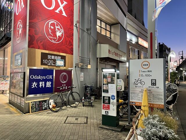 Odakyu OX手前の角、駐輪機が並んだ脇道に入ってすぐ左手。最初駅から近すぎて分からず、辺りをぐるぐる周回。