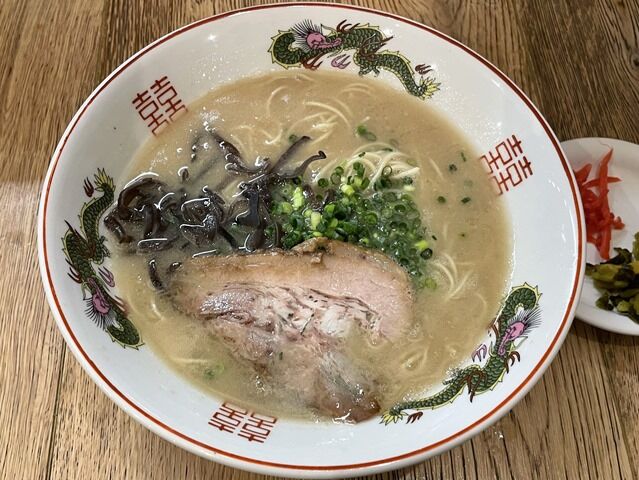 双喜紋と蒼龍が舞う古典的なラーメン丼で着丼。