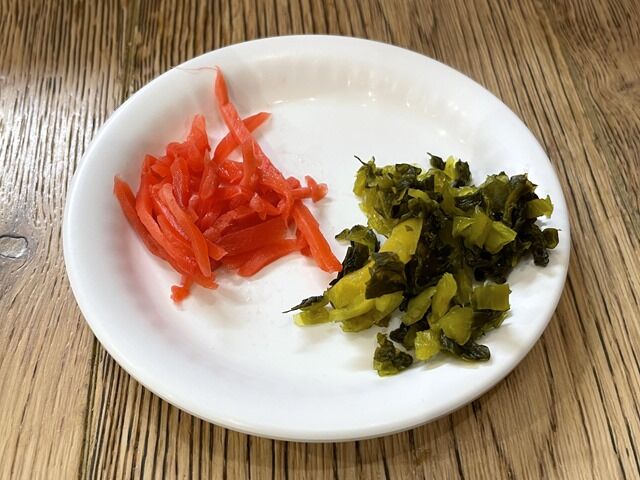 消毒液は入口入ってすぐと各席、奥のコーナーに配備。お冷と辛子高菜、紅しょうがを奥のセルフコーナーからゲットしてスタンバイ。