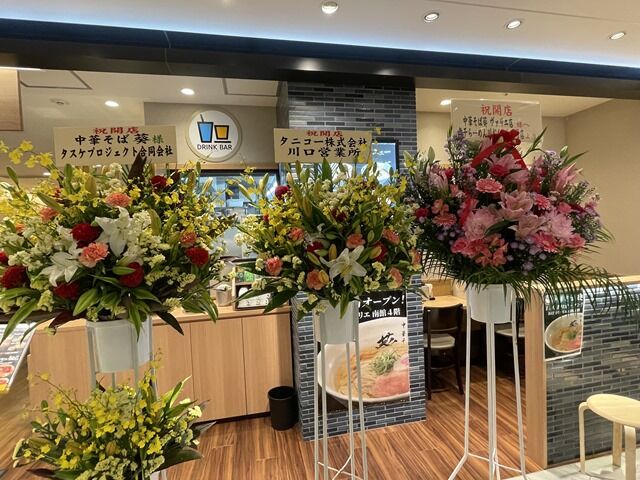 6月末で閉店した麺処景虎の跡地。店頭開店祝花は煮干らーめん川むらから。