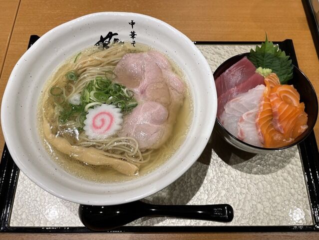 そして待つことしばし、「塩そば+ミニ海鮮丼セット」完成で~す♪