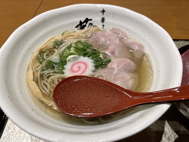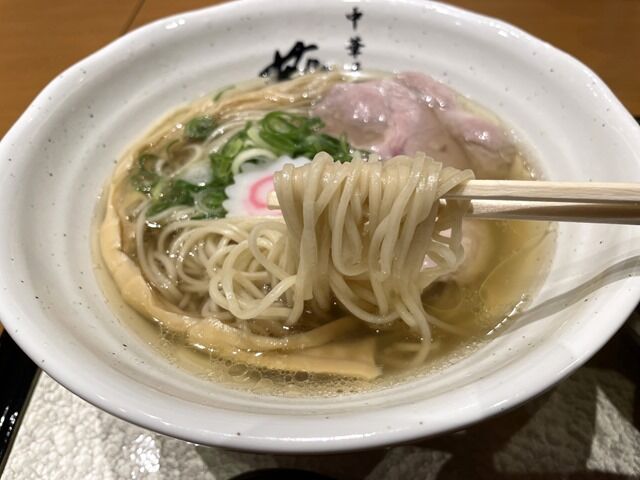 スープはさらさらの清湯塩味。あっさりな中に鶏と魚介の旨みが詰まった旨さが伸びやかに広がる逸品。駅ビルレストランでもその旨さは微塵もブレません。クリアでキレと深みの両立した飲み干さずにはいられない味わいですごく美味しい!