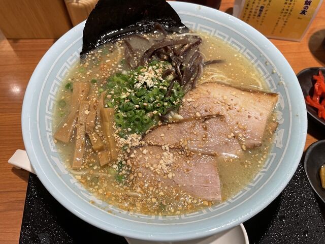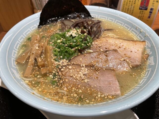 具はチャーシュー、糸島メンマ、キクラゲ、万能ねぎ、海苔、ガーリックパウダー。糸島メンマは、麻竹の国内流通のほとんどが中国産という中で、福岡県糸島産孟宗竹を使用、国内流通1%という希少品。海苔は有明産の「佐賀一番摘み海苔」。ラーメン用海苔とは異なる高級海苔のため、時間が立つと細かく溶けます。