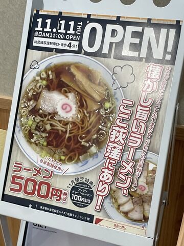 2021年11月11日、仏滅ですが「麺の日」にオープン。店主さんは「中華そばみたか」出身で、「一杯のラーメンで人を笑顔にしたい」がコンセプト。