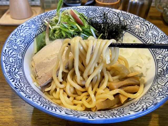 丼の底にあっさりとした醤油ベースのタレ。麺はストレート太麺。ゆで時間3分10秒。ごくシンプルでベーシックな味わい。まぜそばと言うより油そばに近い感覚。クセのない優しい味ゆえに、味変アイテムが効果的に機能します。特に酢とラー油がいいですね。揚げ玉は面白い食感に。いろいろ楽しめてとても美味しい!ただ食べきるとタレがほとんど残らず追い飯は厳しいかも。それ以前に腹パンですが^^;