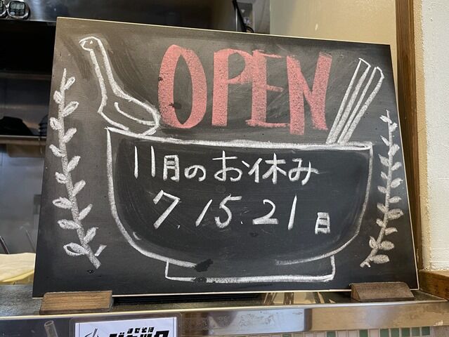 11月の定休日は、7(日)、15(月)、21(日)と変則的。BGMはポップス。箸は割り箸と洗い箸のW装備。