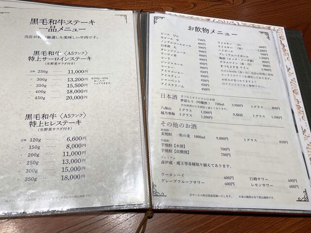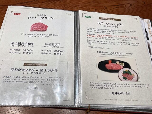 ランチのサービスメニューはステーキランチ2500円、和牛ハンバーグステーキ2000円、和牛ダブルハンバーグステーキ2900円、お昼のスペシャリティⅠ3900円、プレミアムランチ9900円、他。