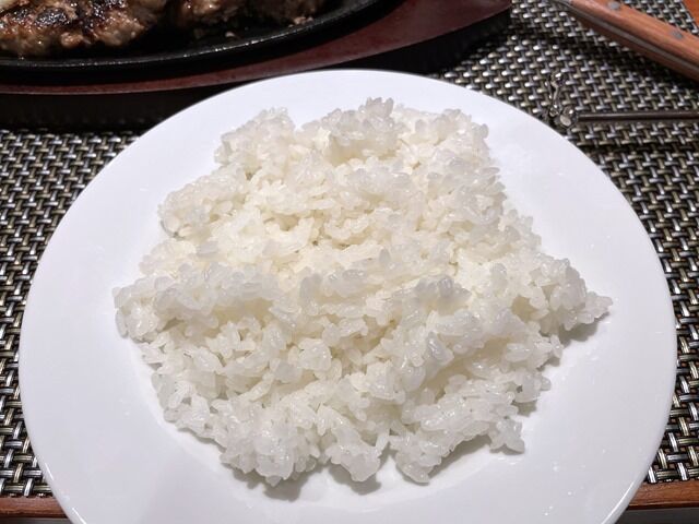 「和牛ダブルハンバーグステーキ」(ハンバーグ150gx2)。サラダ・ライス・スープ・コーヒー付き。