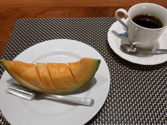 デザートのメロンとコーヒor紅茶のチョイス、今回はコーヒーで。