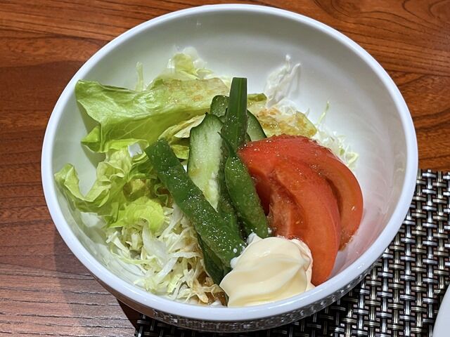 「生野菜サラダ」和風ドレッシングとマヨネーズがかかってます。